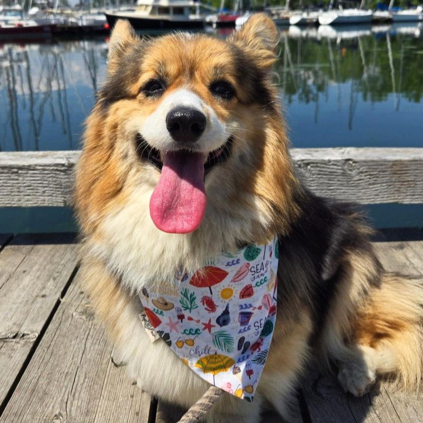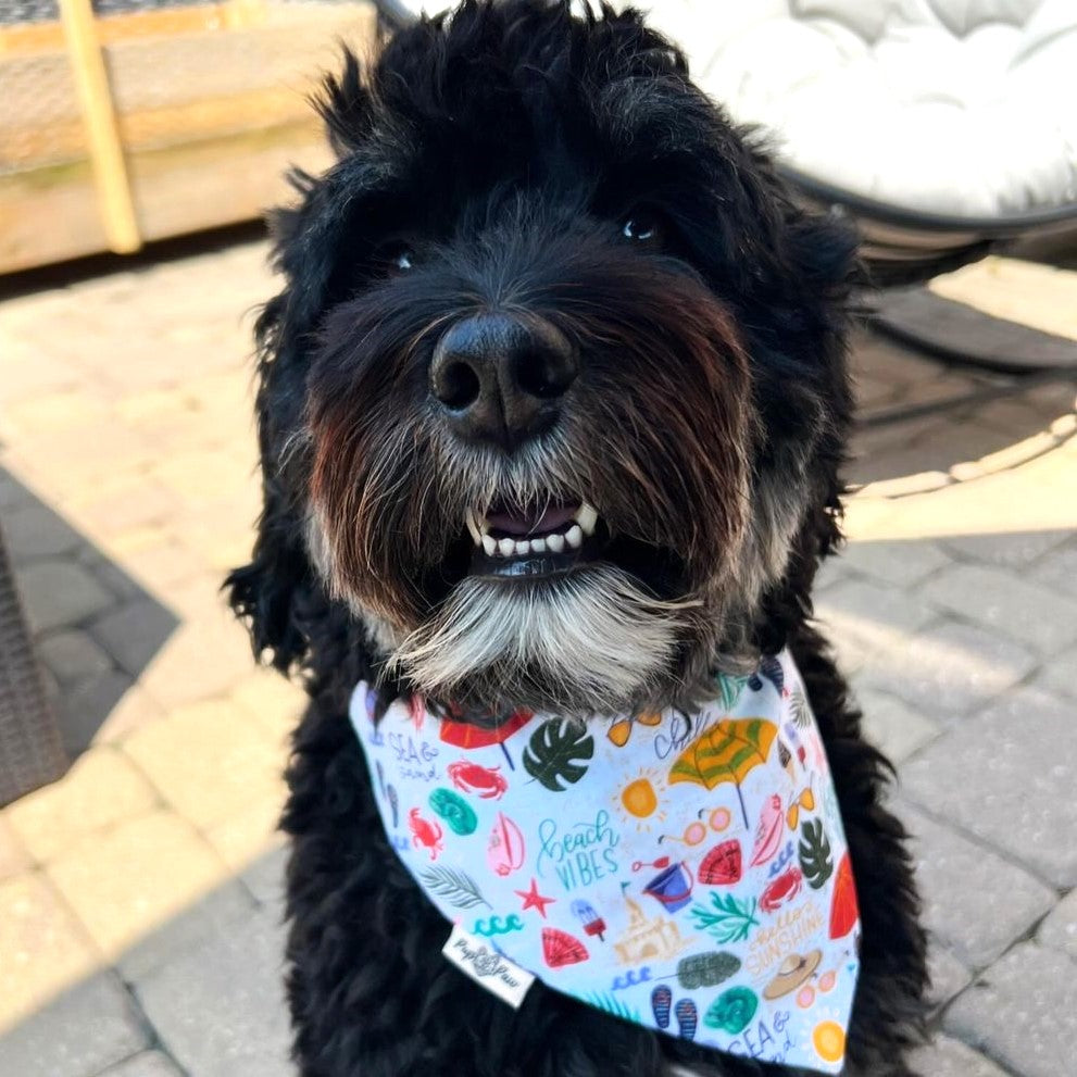 - Our bandanas are designed with a unique curve to fit your pup's neck, as it mimics their natural neckline making them much more comfortable for your pup to wear and easier to tie on.