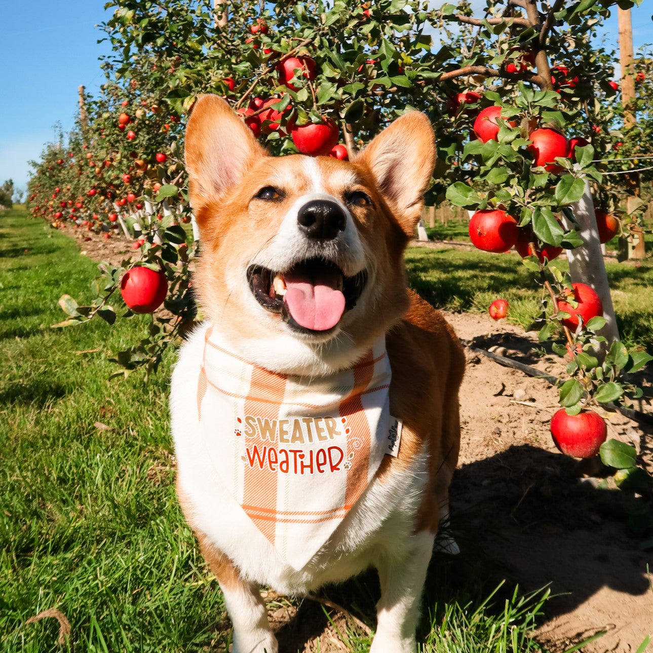 - Our bandanas are designed with a unique curve to fit your pup's neck, as it mimics their natural neckline making them much more comfortable for your pup to wear and easier to tie on.