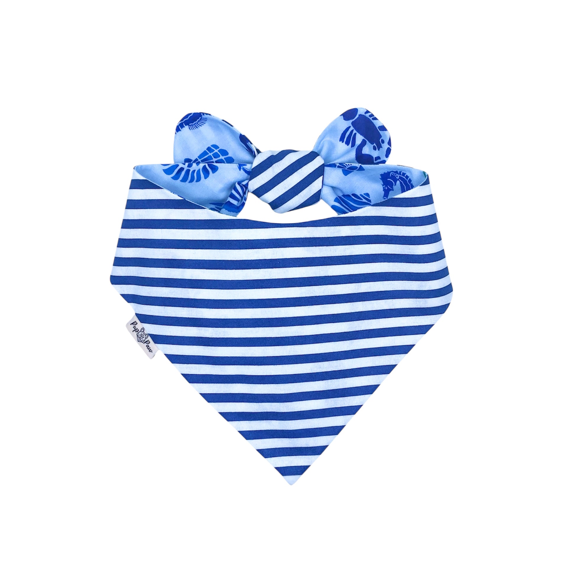 - Our bandanas are designed with a unique curve to fit your pup's neck, as it mimics their natural neckline making them much more comfortable for your pup to wear and easier to tie on.
