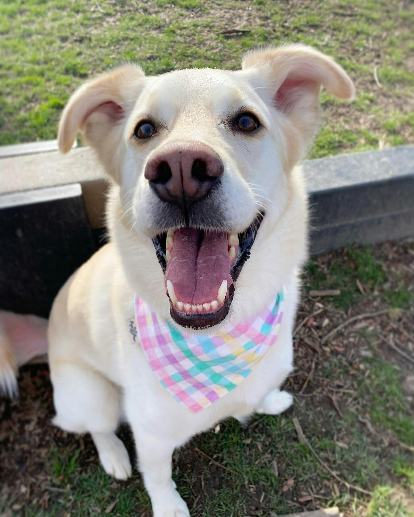 - Our bandanas are designed with a unique curve to fit your pup's neck, as it mimics their natural neckline making them much more comfortable for your pup to wear and easier to tie on.