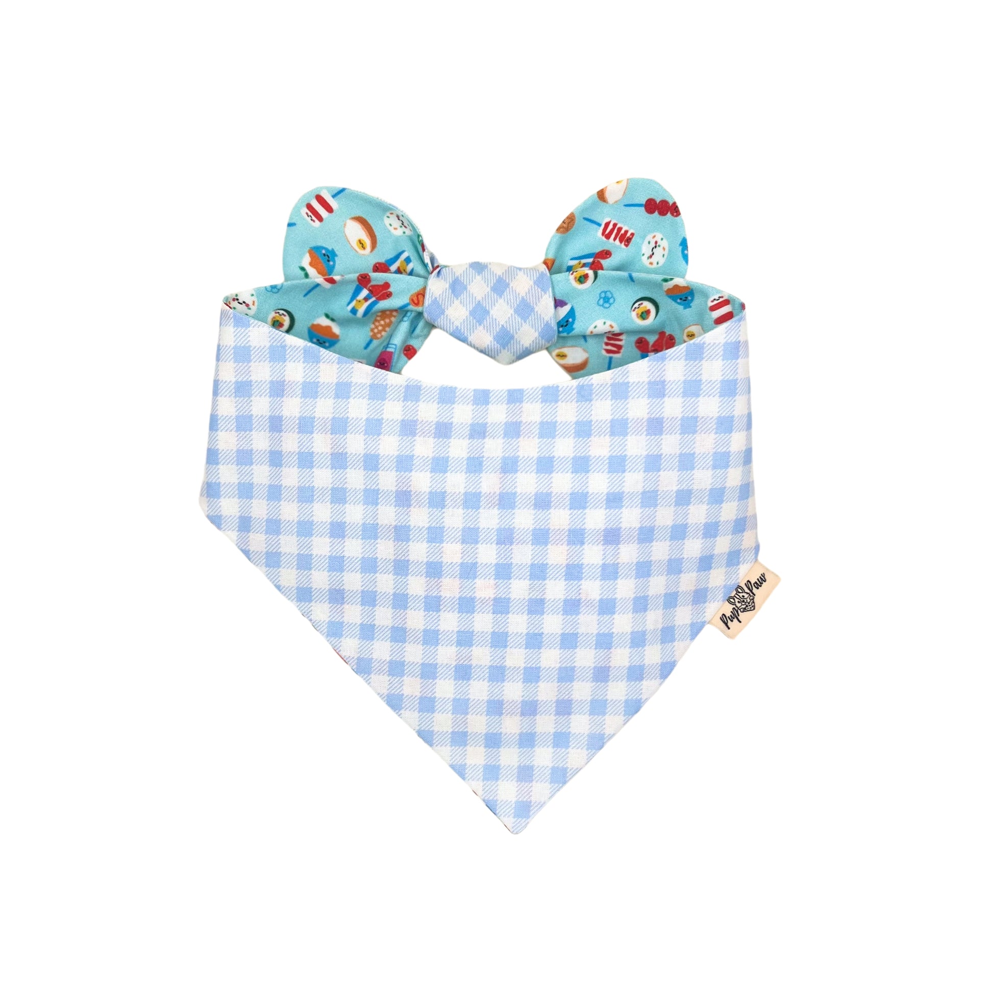 - Our bandanas are designed with a unique curve to fit your pup's neck, as it mimics their natural neckline making them much more comfortable for your pup to wear and easier to tie on.