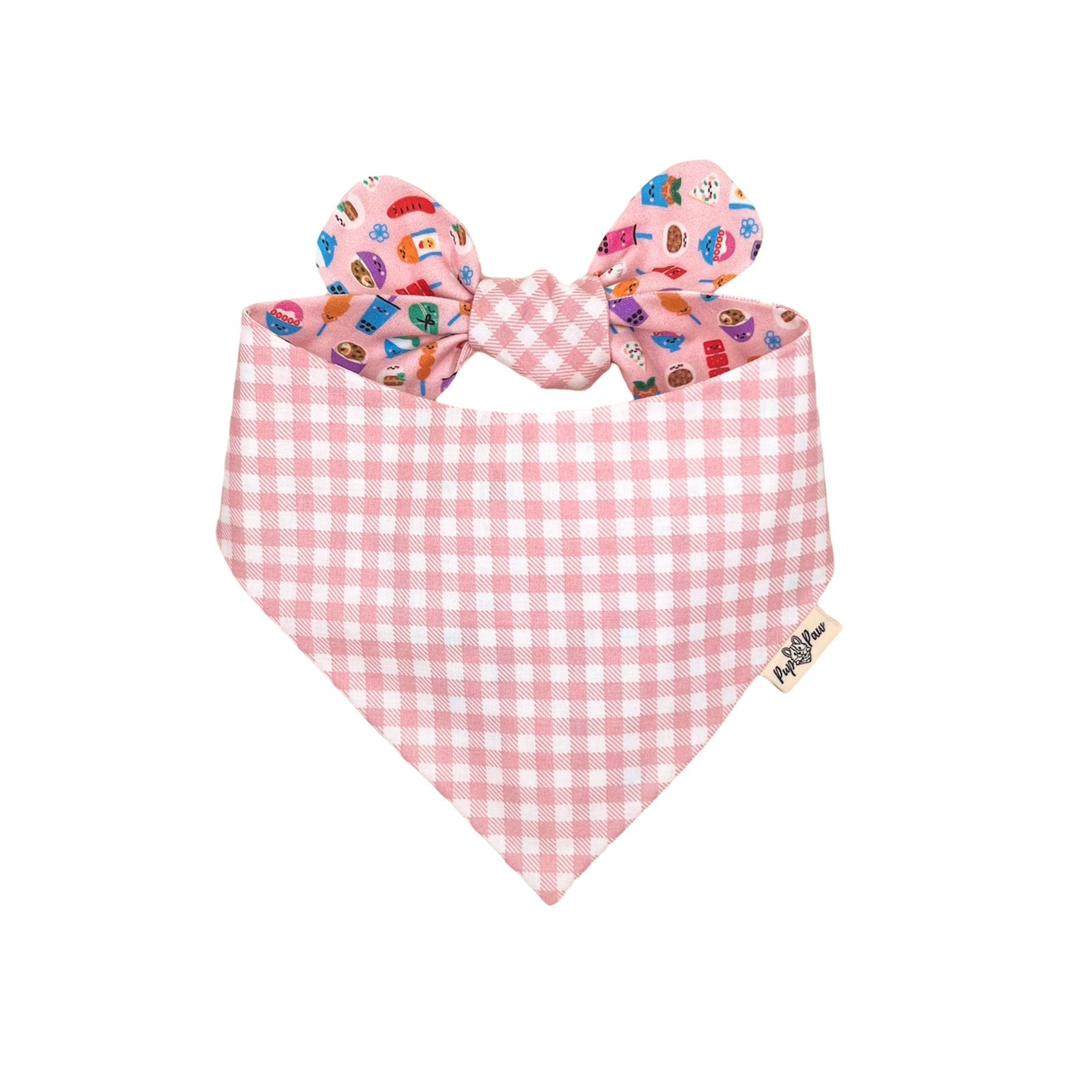 - Our bandanas are designed with a unique curve to fit your pup's neck, as it mimics their natural neckline making them much more comfortable for your pup to wear and easier to tie on.